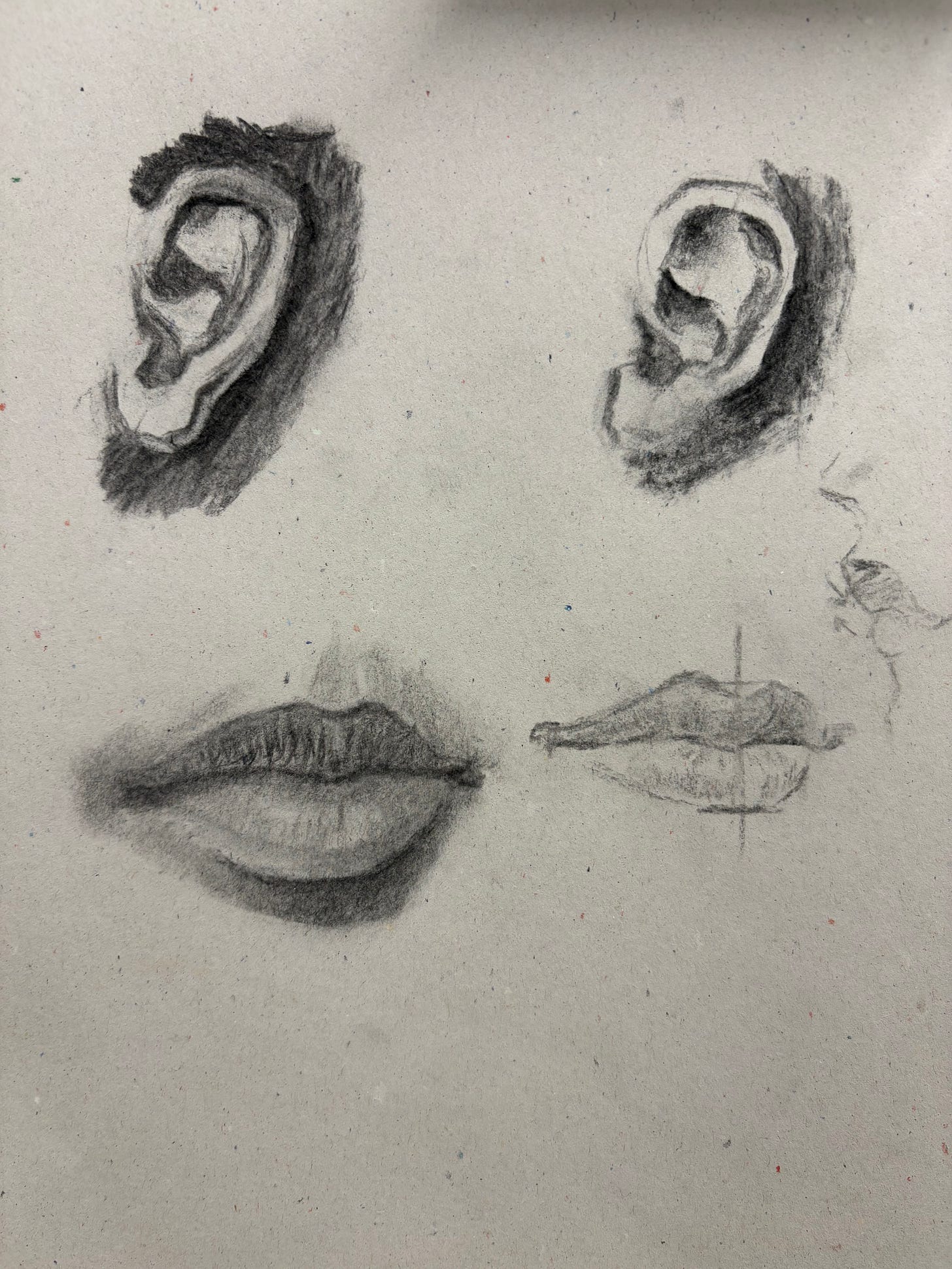 In art, I took a step back from drawing whole humans to learning to draw every part of the human body individually. Last class, it was the ear and mouth.